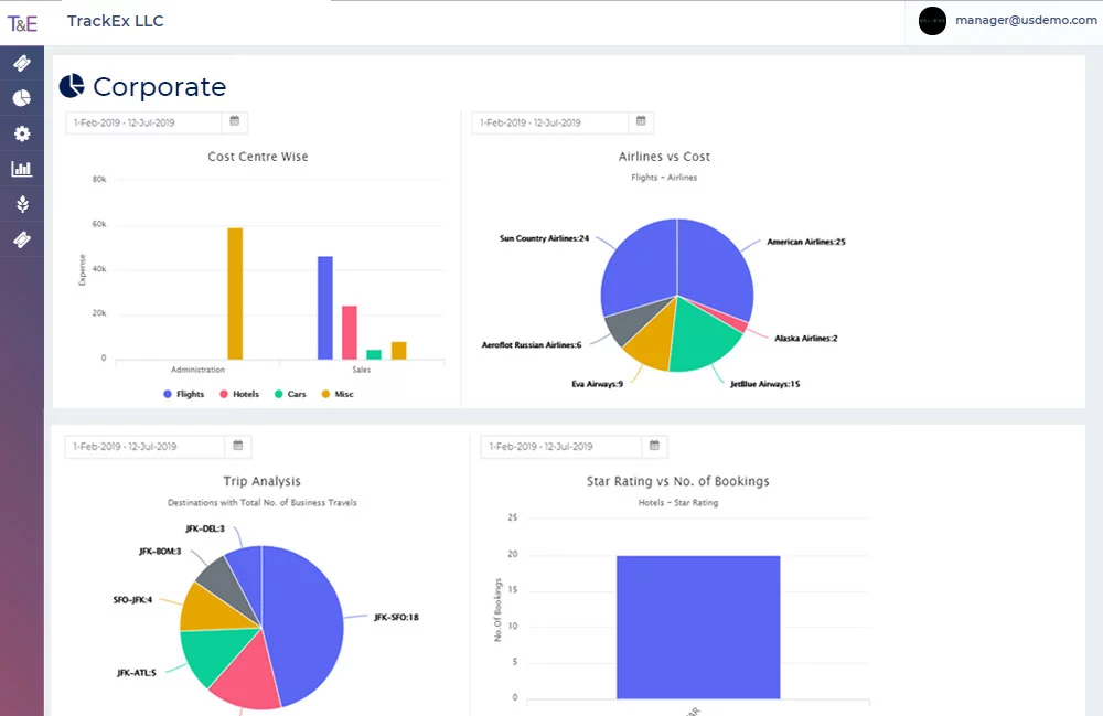 TrackEx also has an advanced in-built travel booking tool with an exclusive and wide range of corporate fare inventory. This feature comes with an advanced fare-search intelligence across GDS and multiple sources. This feature is simplified on the web, mobile, and app interfaces in such a way, that it easily sends the booking request to managers for pre-approval, and facilitating instant booking upon approval.